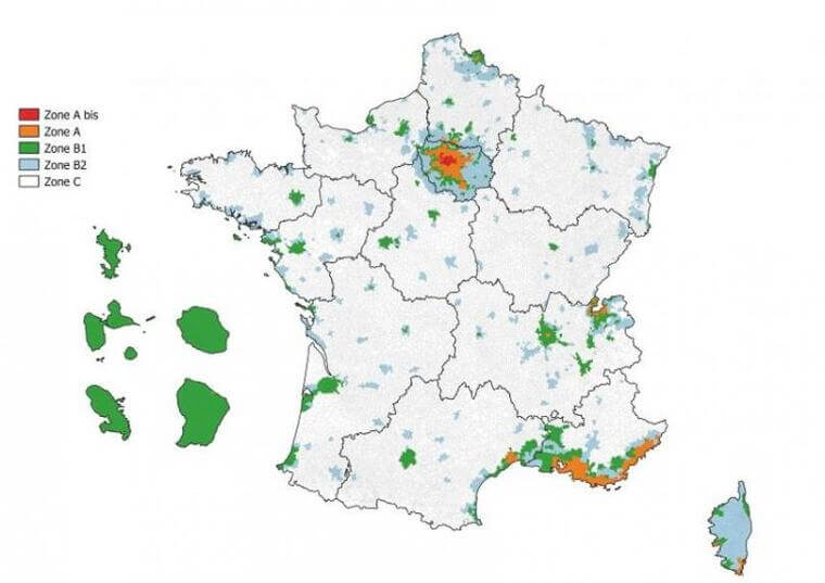 Depuis le début de l’année 2018, les zones concernées par la loi Pinel sont les zones A, Abis et B1. Il s’agit de zones immobilières « tendues ». Cela signifie que la demande locative est élevée et nécessite une offre plus conséquente. Les zones B2 et C sont trop peu demandées. De ce fait, elles ont été exclues du dispositif Pinel. Depuis la réforme de 2021, les zones éligibles sont inchangées. Voici une carte récapitulative du zonage Pinel en métropole et outremer.